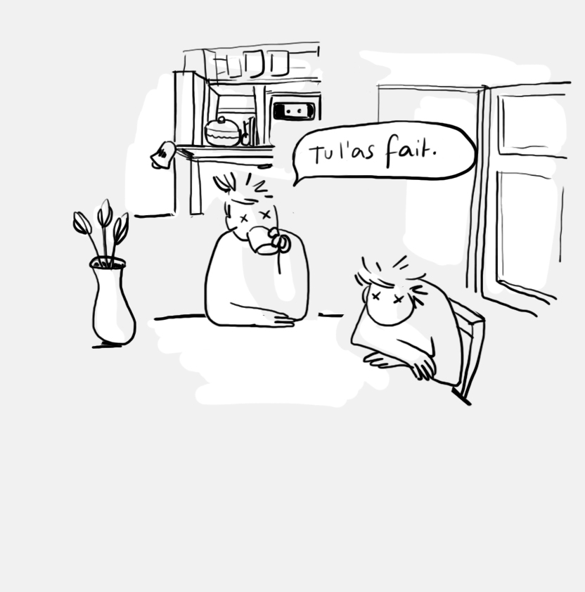 Et quand on est en coloc, on souffre, mais au moins on est ensemble et on a tous la même coupe de cheveux. (A part Sacha parce que ces cheveux sont trop longs pour tenir debout)