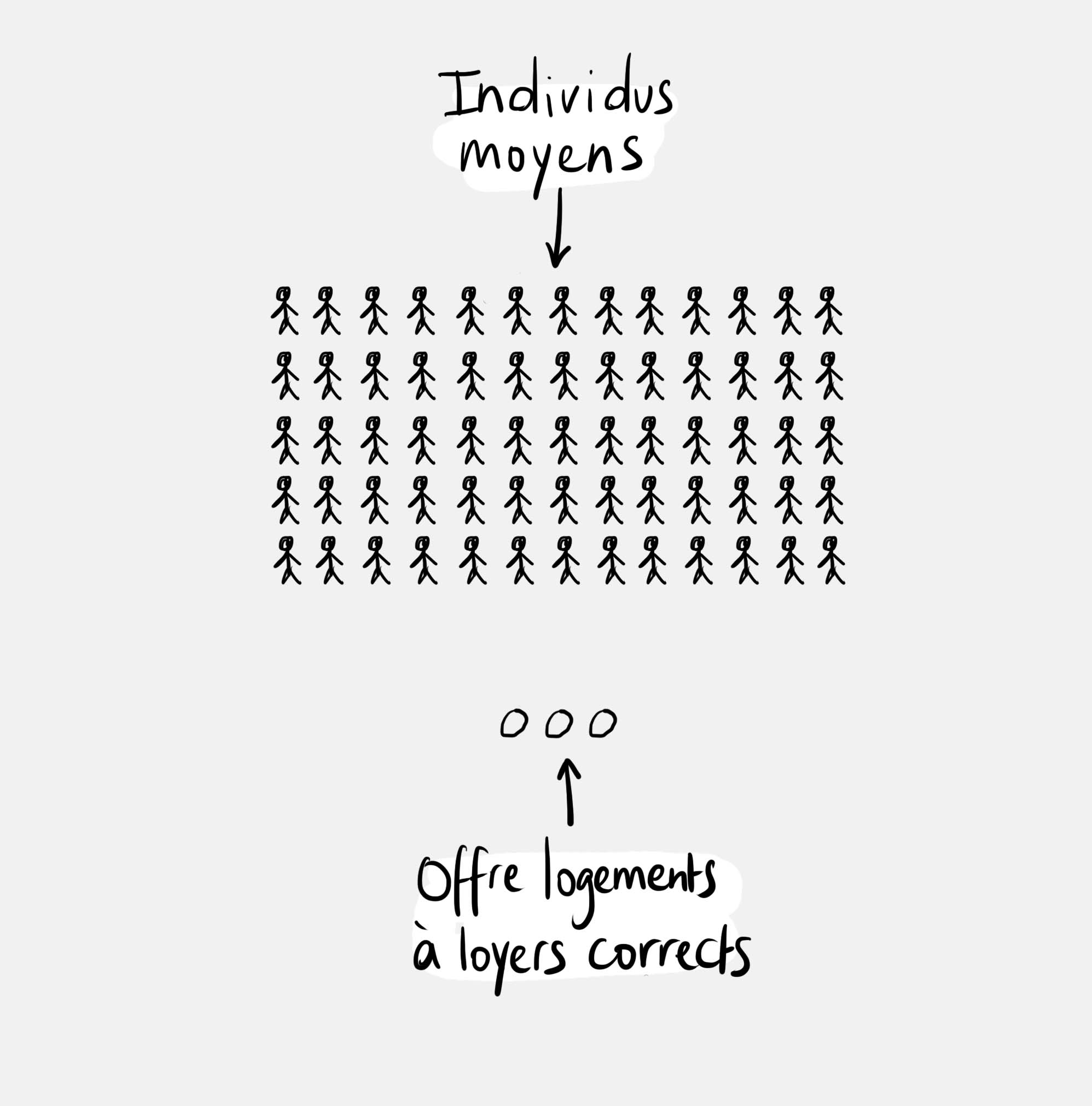 Je suis gentille car je ne parle pas des régies qui font visiter des appartements déjà attribués, qui engagent des travaux superflus pour augmenter le loyer, des expulsions de locataires pour raisons très floues… On ne parle pas non plus de toutes les conséquences liées à cette pénurie (migration et surdéveloppement des constructions en France voisine etc…)