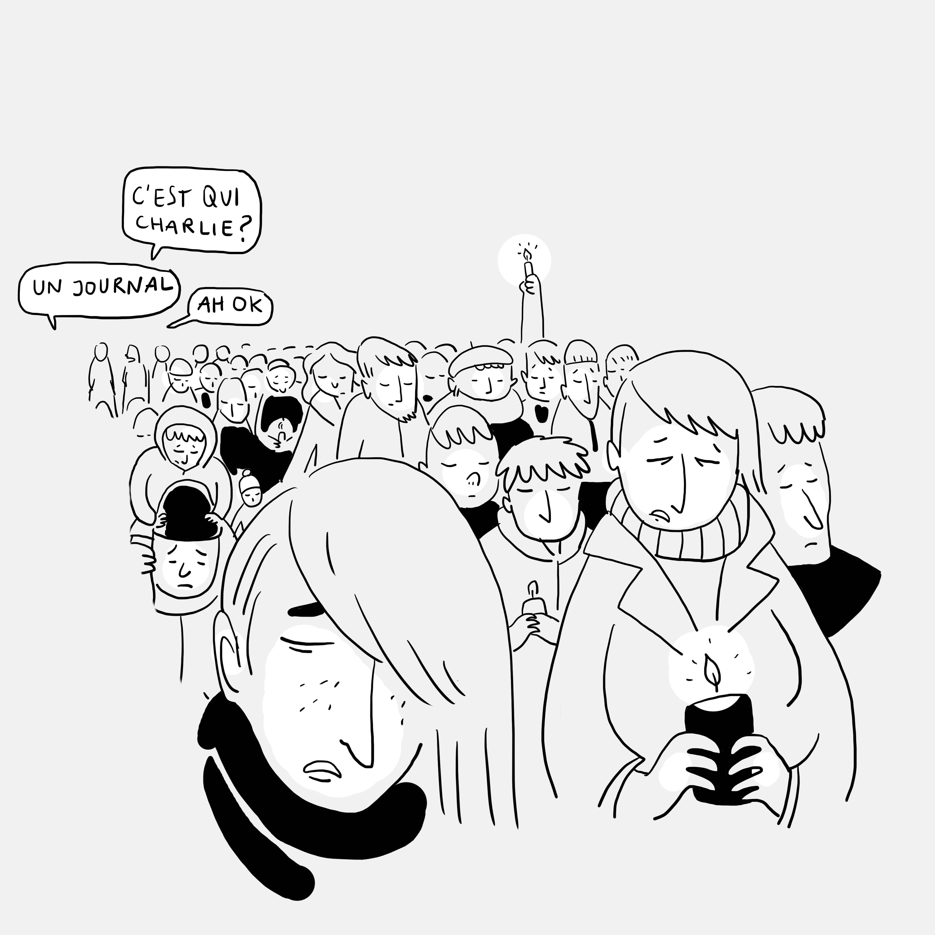 se rassemblent par solidarité. Avoir déjà lu ou non ce journal peu importe, on est Charlie ou on ne l’est pas.